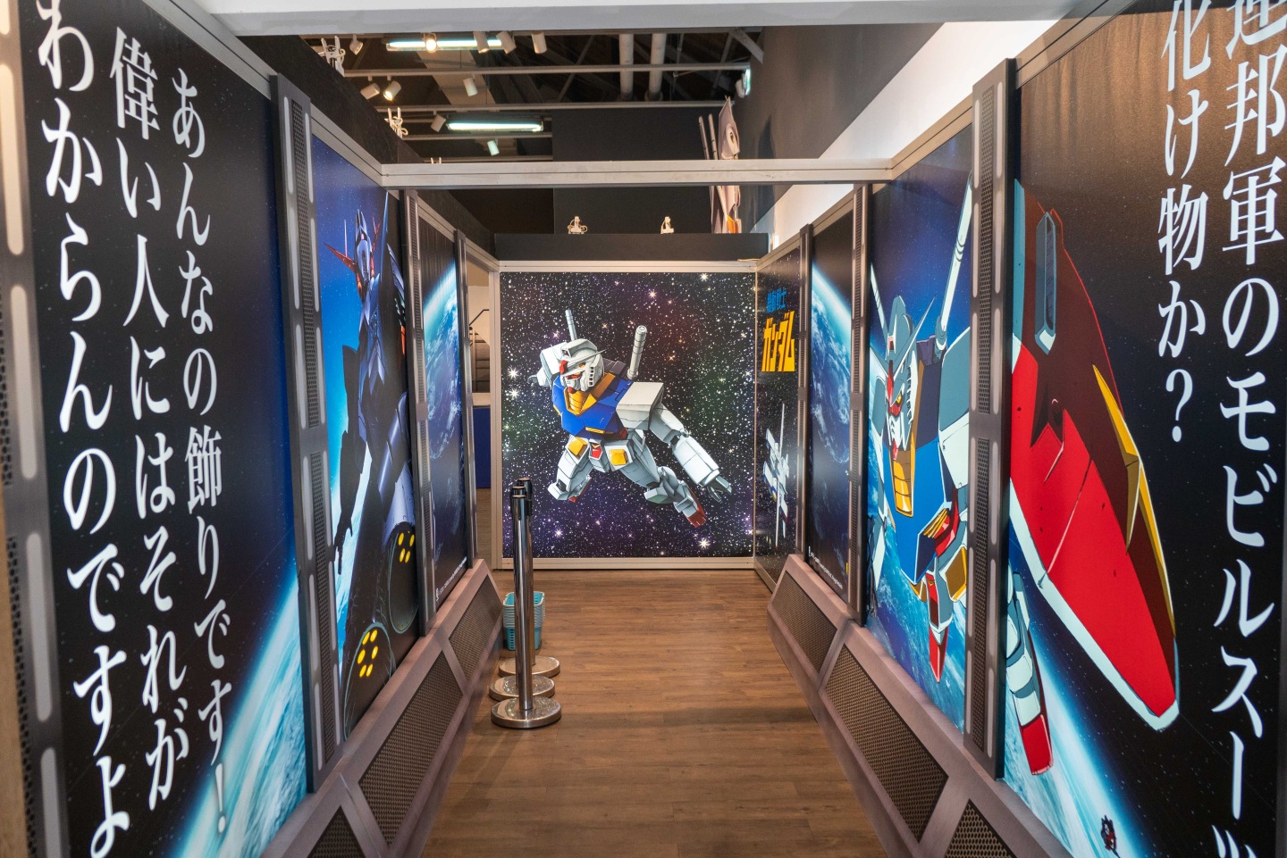 店門口以聯邦軍主題設計「EFSF座艙入口」,以初代鋼彈/夏亞專用薩克形象牆迎接粉絲到來,入口則是「鋼彈宇宙星際隧道」打造宇宙世紀兩大知名機體的對抗。