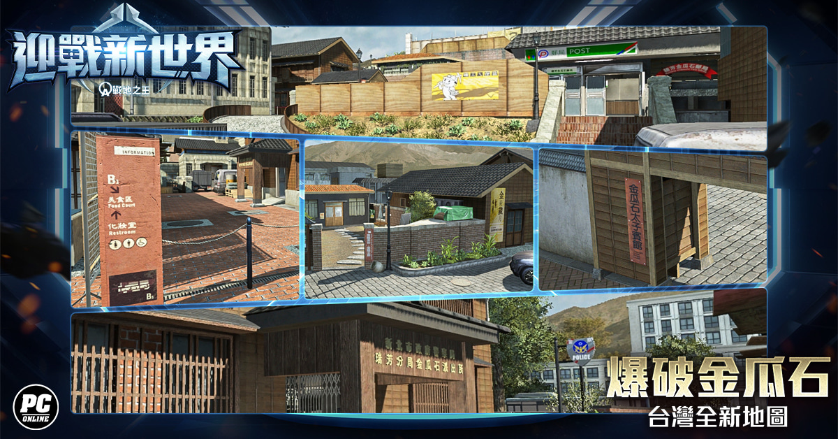 繼「士林夜市」之後,遊戲睽違多時再度推出以台灣為背景製作的地圖,這次地點選在知名景點金瓜石作作為設計基礎,是一張具備高低差的地形和狹窄巷弄的爆破模式地圖,地圖上隨處可見台灣元素,包括當地警察局、郵局和太子賓館一一呈現,周邊還有許多熟悉的招牌、路牌,更添幾分親切感。