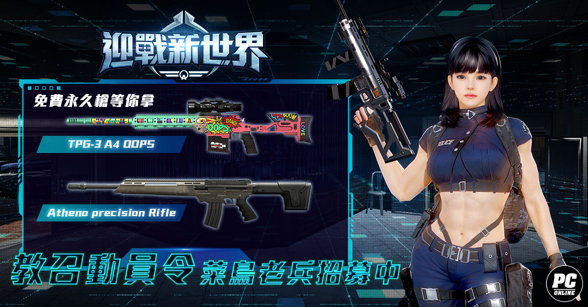 而為了慶祝本次改版上線,官方舉辦各項虛寶活動,新兵老兵完成任務就有 「Athena Rifle」、「TPG-3 A A4 唉呦喂呀」槍枝,以及「M67 鬼宿星團」手榴彈、「前輩的拖鞋」近戰武器……等永久獎勵;另外只要在活動期間嘗鮮體驗「槍鏘自由配」、「黑市軍火商」新系統,達成指定目標就有更多遊戲幣和合成道具可以領!