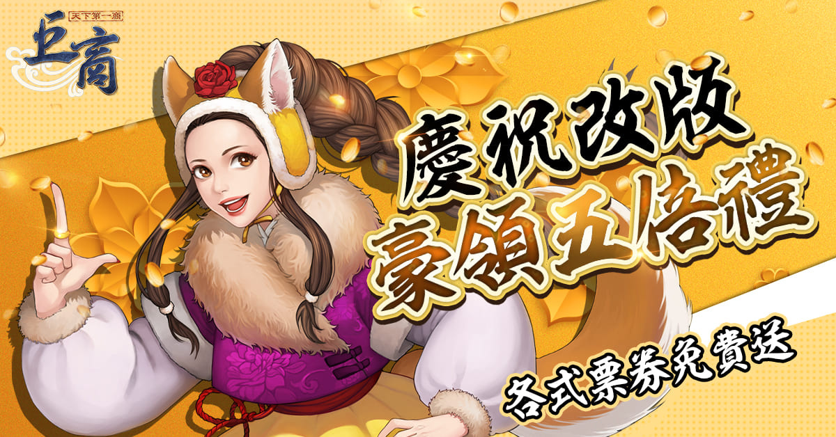歡慶改版,官方於 10 月 21 日至 11 月 21 日期間,將推出一系列好康活動,玩家不僅能享有長達 1 個月的 300% 經驗值加倍福利外,活動期間內累積登入,就能獲得「壇君之鏡」、「挑釁符」等多項免費道具,此外,週週登入更能領取「五倍挑戰券」的免費禮包,內含「戰鬥票券」x5、「四天王戰鬥券」x5、「武道場挑戰模式票券」x5和「血鬥場票券」x5等豐富好禮。