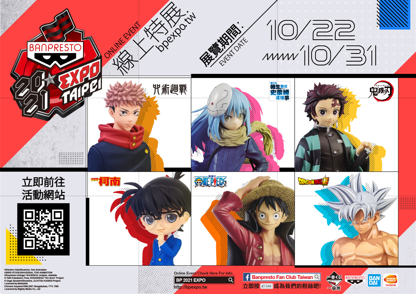 年度最盛大動漫作品模型展「BANPRESTO EXPO 2021」即將於 2021 年 10/22~10/31 連續十天於線上開展!由台灣萬代南夢宮有限公司旗下玩具事業部主辦,集結各人氣動漫作品最新模型玩具和周邊熱賣商品之「BANPRESTO EXPO 2021」,10/22 起於線上熱鬧開展。