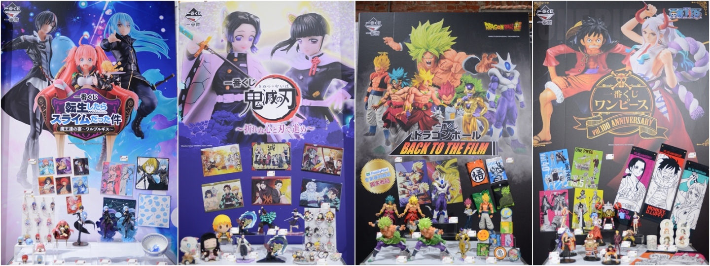 隨著全台越來越多官方認證店的設立,以推出豐富商品以及人人有獎玩法的一番賞,今年展出陣容更是令粉絲期待,包括《鬼滅之刃》、《七龍珠》、《航海王》、《機動戰士鋼彈》、《寶可夢》…等,歡迎粉絲於官網直接查詢住家附近的認證店位置,呼朋引伴一起去試試手氣,抱回大獎!