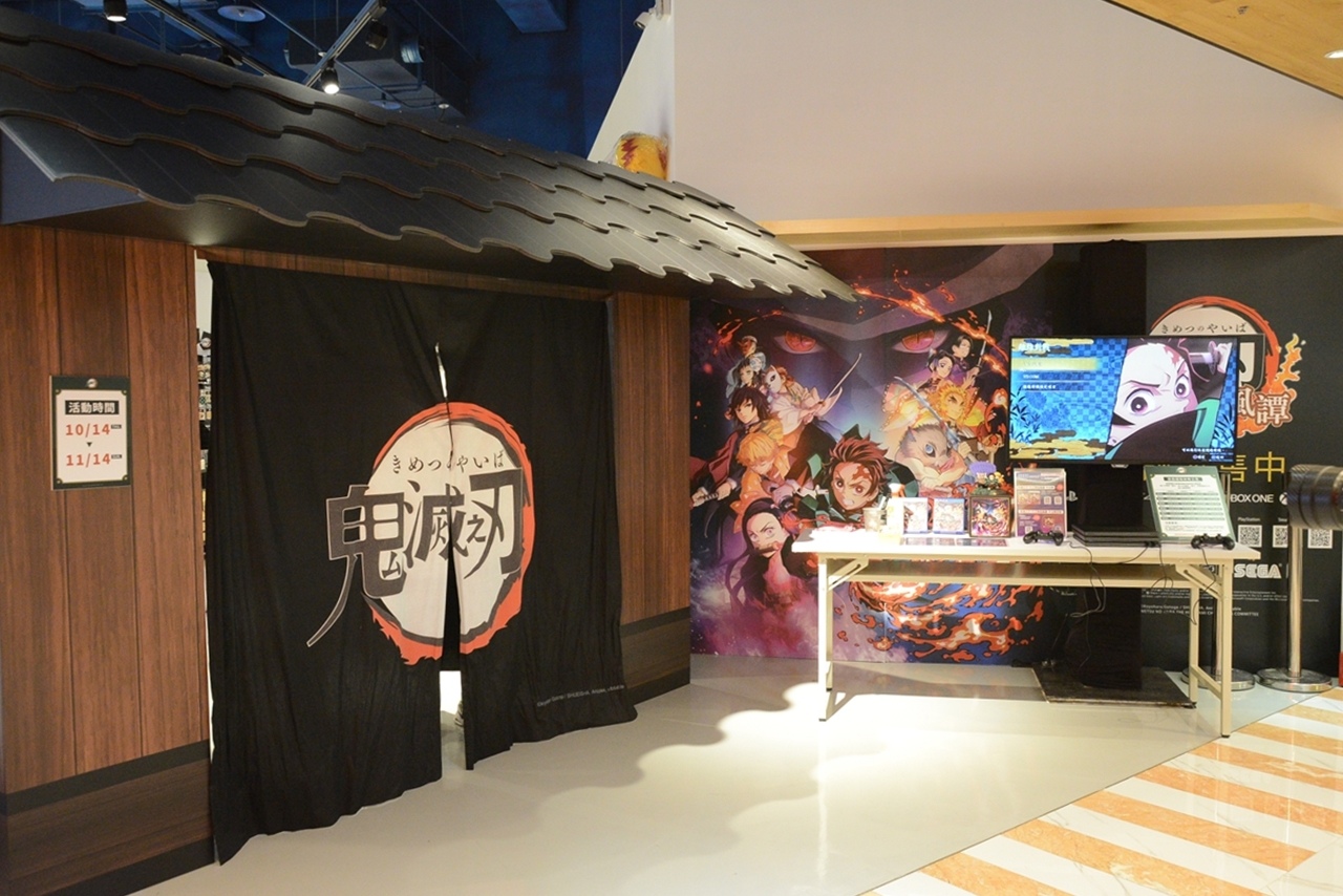 快閃店外裝懷舊木門迎接粉絲,一旁還有最新遊戲《鬼滅之刃 火之神血風譚》實機試玩