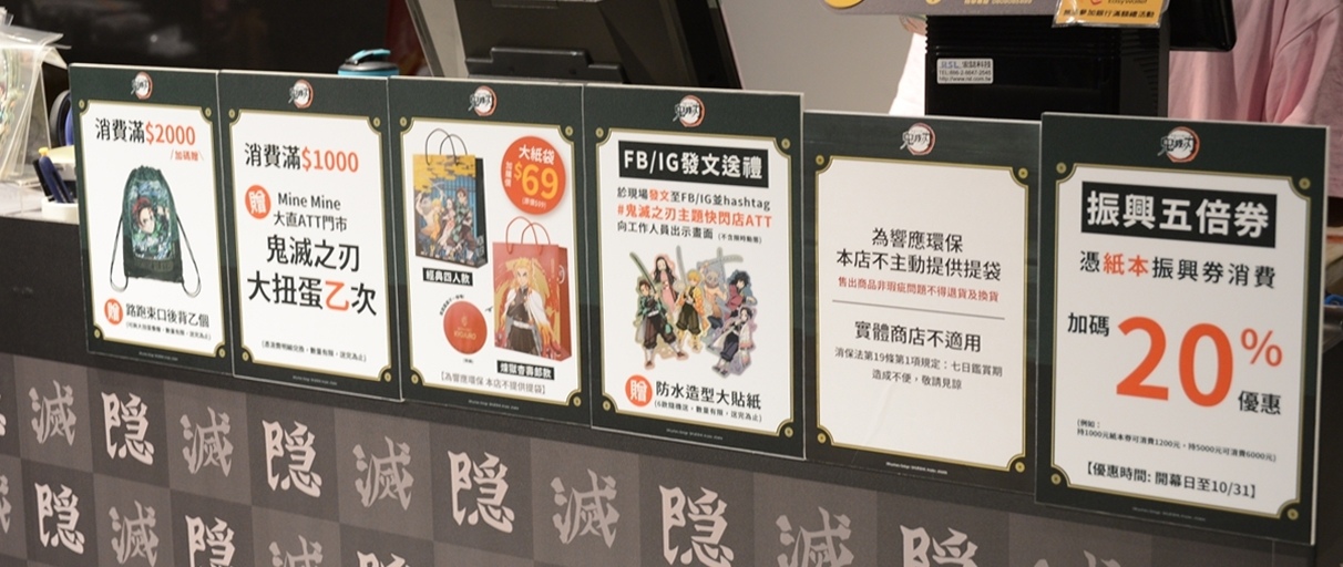 配合《鬼滅之刃 無限列車篇》電視動畫播出,「鬼滅之刃快閃店」也再度於 10/22 在大直 ATT e Life 一樓「新娛樂動漫特區」展開全新一期快閃店,這次不僅有全新商品、全新打卡拍照點,還有最有噱頭的炭治郎絕殺招式「碧羅之天」場景等你來拍照!