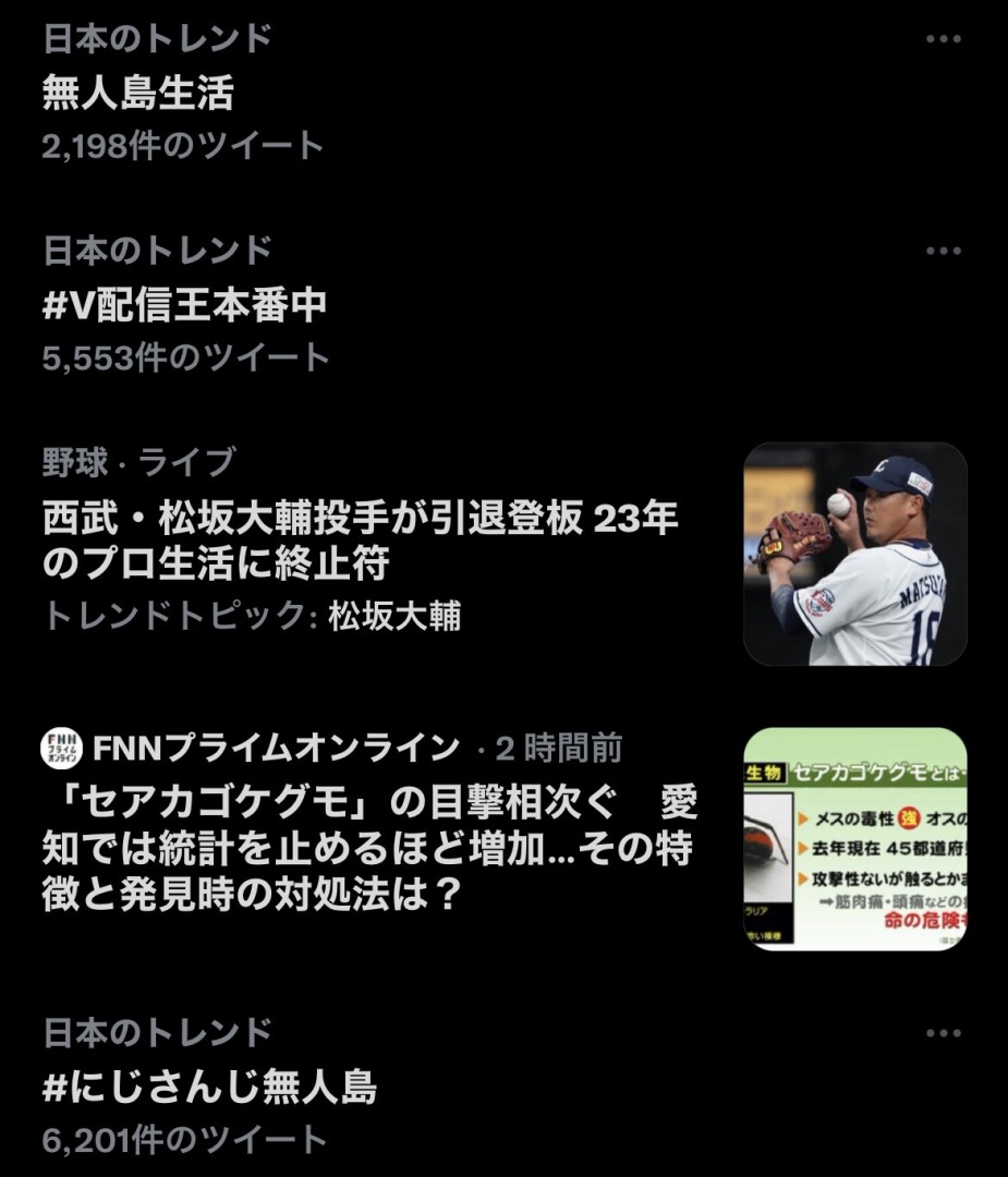 10/19 當天晚上日本的推特趨勢,光是無人島相關的就有兩個進了趨勢