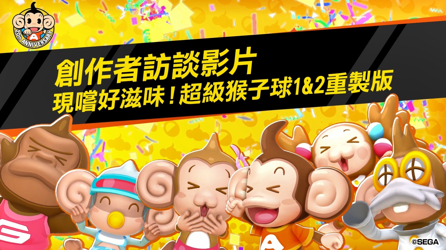 SEGA 於 YouTube 公開了《現嚐好滋味!超級猴子球 1&2 重製版》製作人城崎雅夫等人出演的創作者訪談影片。訪談影片中將談論「超級猴子球」系列與本作《現嚐好滋味!超級猴子球 1&2 重製版》的作品概念、製作時特別講究的地方,以及錄製主題曲「Hello Banana!!」時的小插曲等話題,絕無僅有的內容絕對讓您看得盡興。
