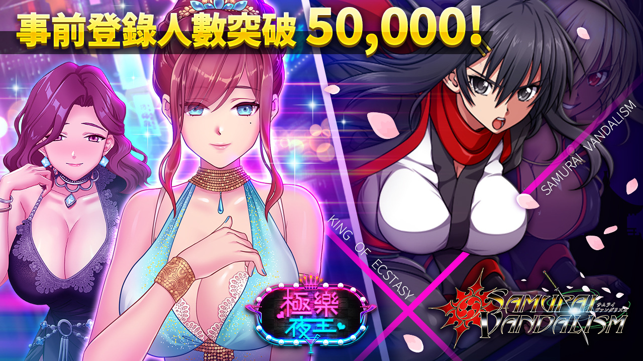 《極樂夜王》事前登錄網頁公開後一週,登錄人數突破 5 萬人!為此開發團隊宣布繼《Sleepless》合作後, 《極樂夜王》將與 ONEONE1 合作推出《Samurai Vandalism》的人氣角色!