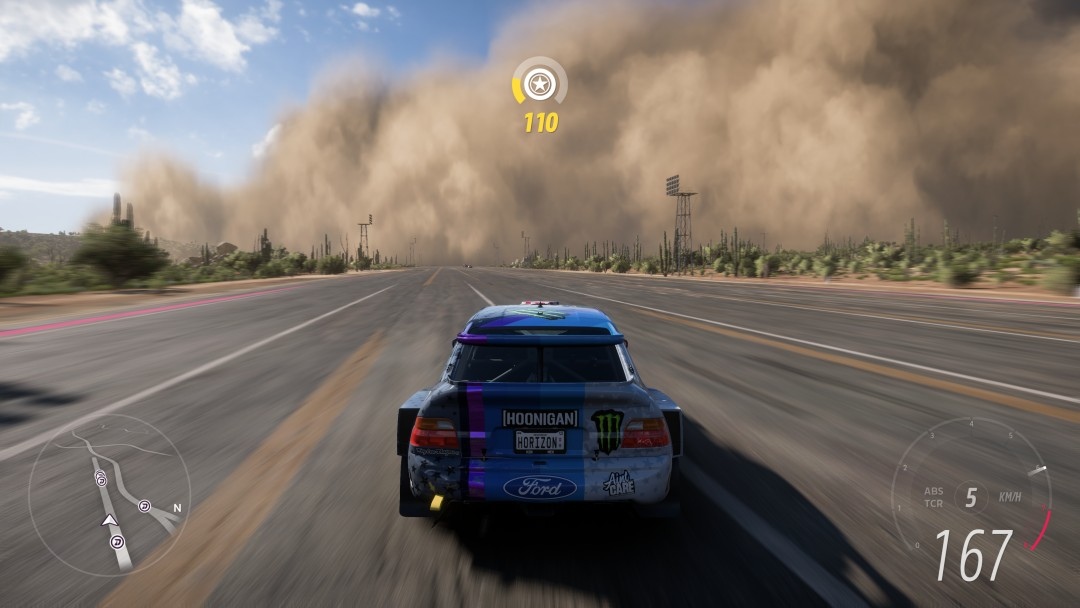 在連線狀態下,在玩家的世界中可能會遇到好友或者其他線上遊玩的車輛集結在某處準備進行一場比賽,而你要作的事情就是隨意選擇路線前往現場,在本作中,氣候的變化更為劇烈,有時在晴朗無雲的的氣候下,之後突然降臨沙塵暴,或者是暴雨中進行賽事。這些氣候場景將會關係到你駕駛時的操作狀態。