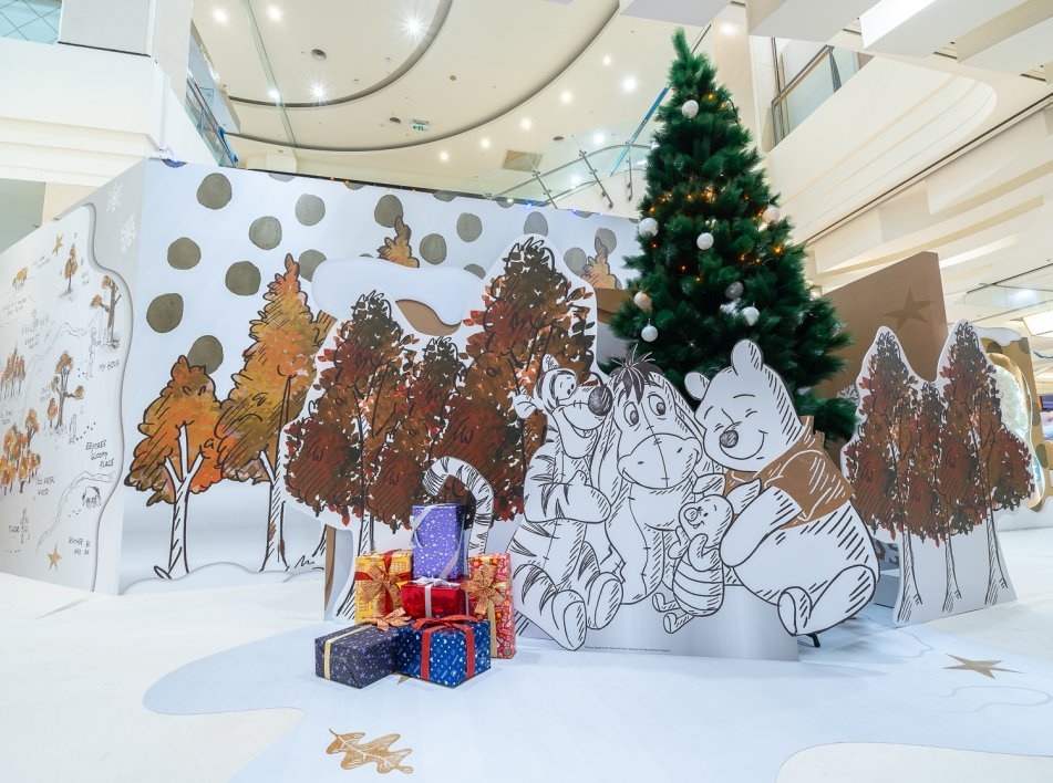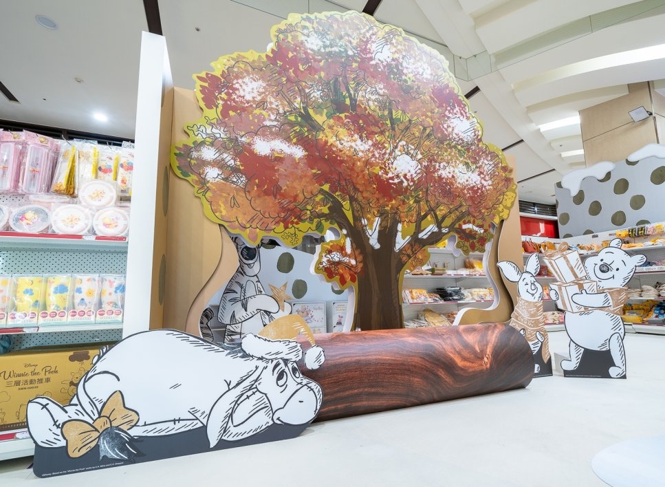 想和小熊維尼與好友們一起渡過雪白歲末嗎。還沒入店就看到小熊維尼跟小豬依偎著在「雪白森林拱門」迎接粉絲;超過 200 公分的「小熊維尼主題禮物盒」除了跳跳虎跳起來給粉絲驚喜外,一旁被小熊維尼舉起的小豬準備掀開禮物盒的動作也超可愛;一旁的「百畝森林造型聖誕樹」下小熊維尼與好友們互相擁抱,大家選完禮物別忘了也來抱抱他們呀!