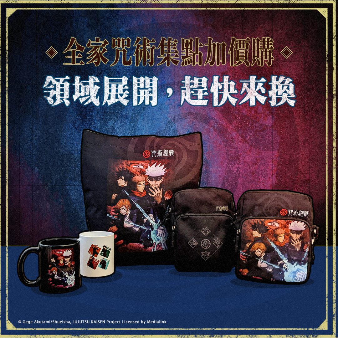 由羚邦集團正式官方授權,全家和《咒術迴戰》即日起聯手展開「《咒術迴戰》集點加價購主題集點活動」,此次以主角群為首,打造一系列集點商品,首推手提包,使用《咒術迴戰》經典海報,大容量設計、可手提也適合肩背,是粉絲必收的實用好物。