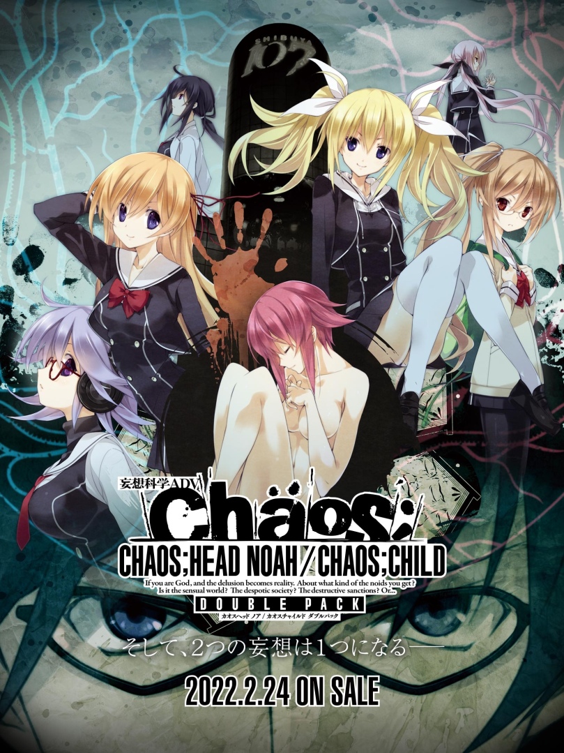 日本 Mages. 預定於 2022 年 2 月在 Nintendo Switch 主機上推出,將旗下兩款科學 ADV 系列作同梱的《ChaoS;HEAd NoAH 混沌思緒諾亞/Chaos;Child 混沌之子 雙包裝版》(カオスヘッド ノア/カオスチャイルド ダブルパック),宣布將決定於 2022 年 2 月 24 日發售,定價普通版 7,480 日圓/下載版 6,380 日圓;另外這兩作也會拆開推出個別販售,定價下載版各 3,300 日圓。同時,也會推出《混沌思緒諾亞》性感補丁作為遊戲初回製造特典。
