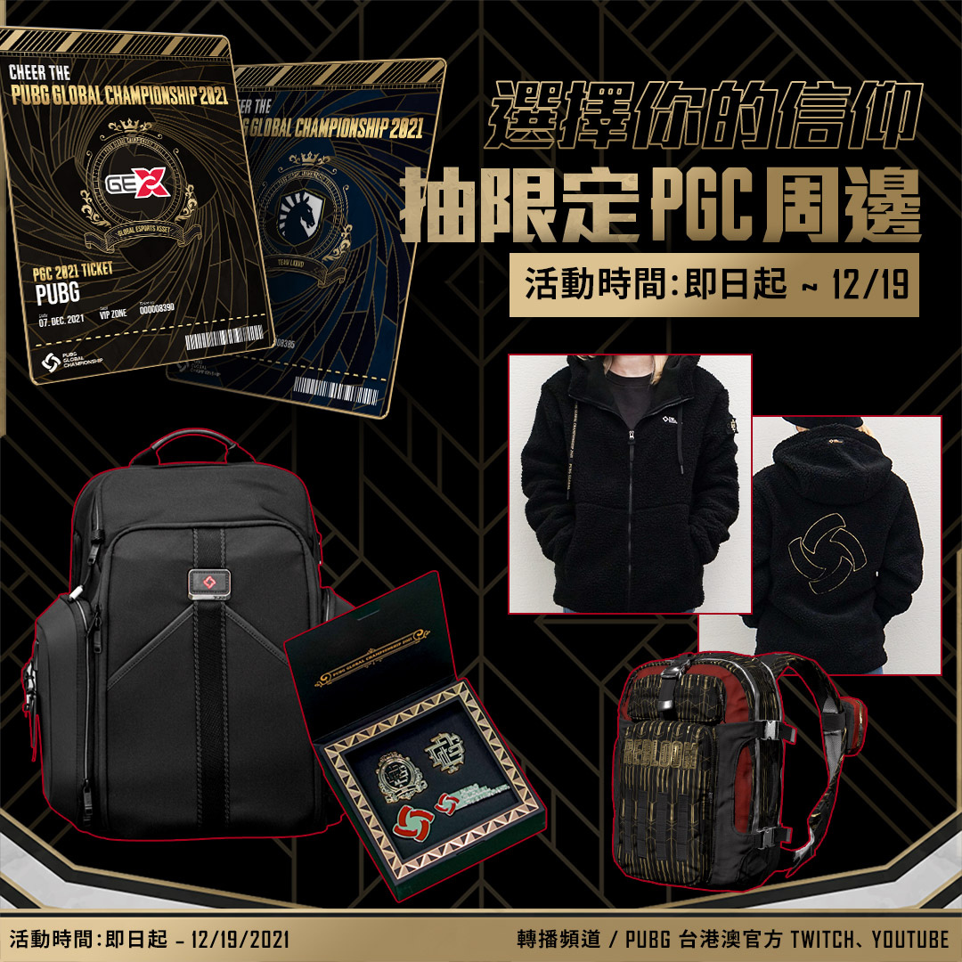 PGC 最後一週週系列賽即將在今晚六點展開,台港澳隊伍 GEX 靠著上週的亮眼表現,今晚從生存賽第一回合出賽,繼續拚奪最終總決賽的門票,請台港澳電競迷們務必鎖定直播,為台港澳選手們加油!同時,官方電競團隊推出 PGC 冠軍預測活動,玩家只要前往活動網頁 ,選擇自己心目中所屬的 PGC 冠軍,就有機會抽中極其限量的 PGC 相關周邊,活動詳情請至官方臉書粉絲團查看,所有PGC最新消息都在官方臉書粉絲團以及官方全新賽事網站,請粉絲們保持關注。