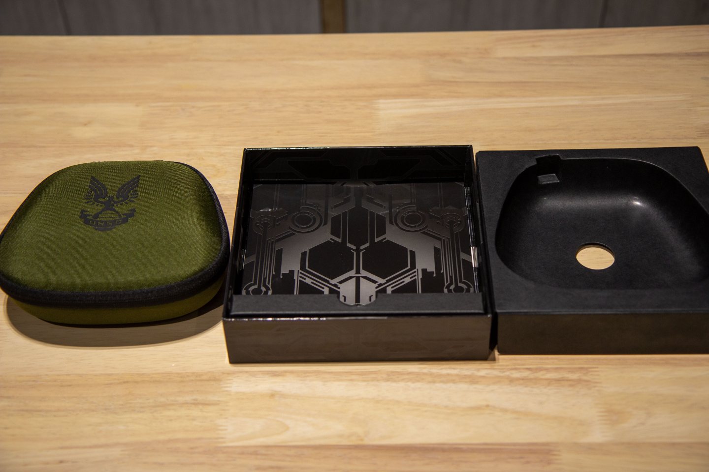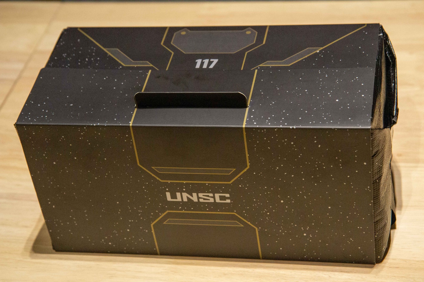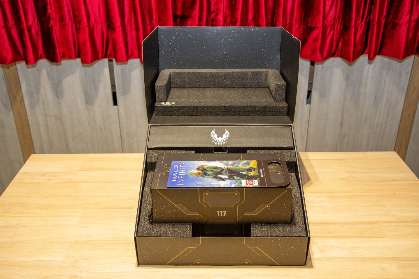 打開盒蓋,可見主機紙套也採星空社樣式,不僅有粉絲熟悉的 117 的標誌,也有聯合國軍對的 UNSC 字樣,搭配《最後一戰》20 週年慶以及特殊色系的 Xbox 商標,四面都有不同的精心設計。