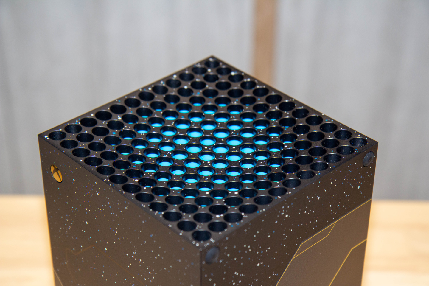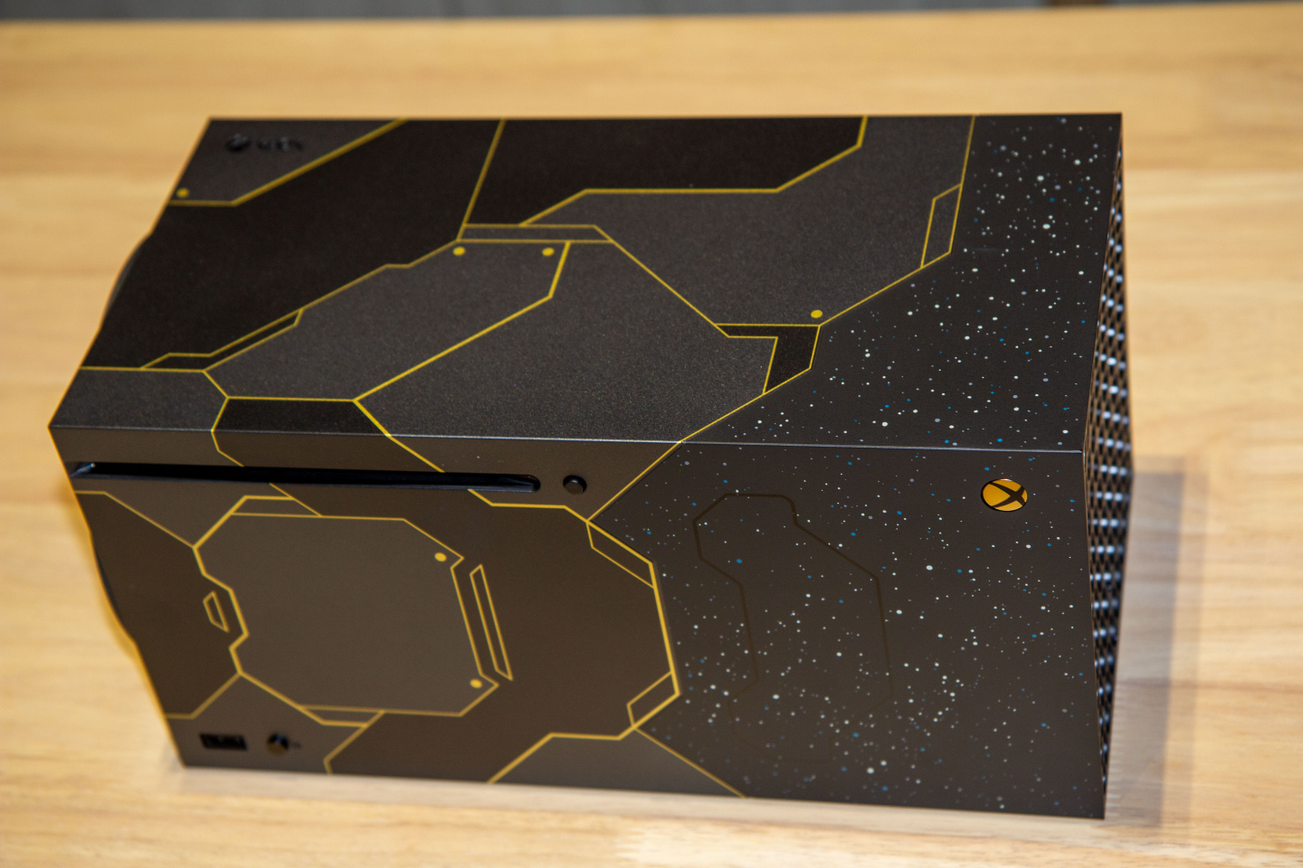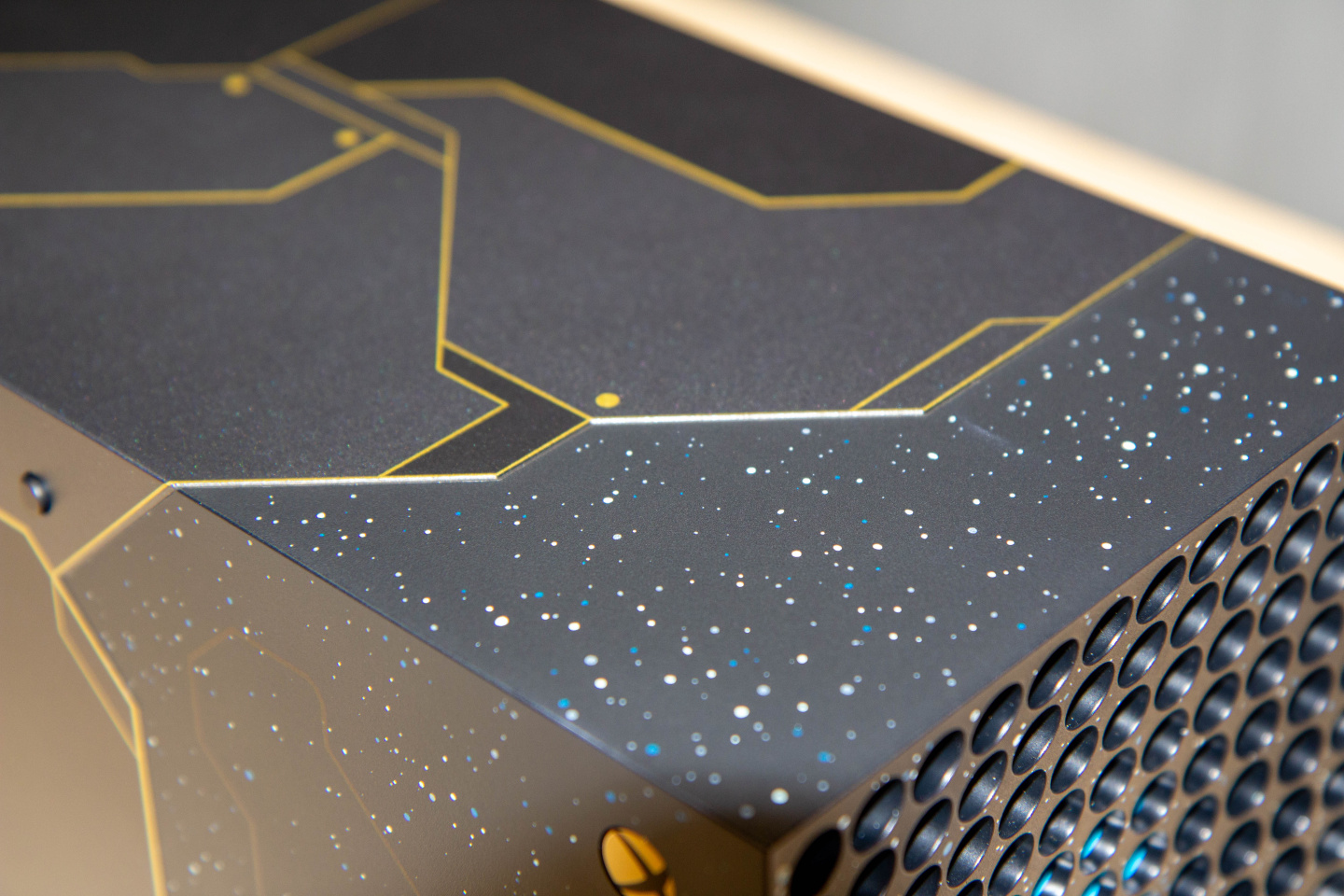 限量版主機採用受 Zeta Halo 啟發的造型設計,星空花紋點綴整體機身,設計感更是有來自像是先驅者造物的超古代文明科技遺跡感。同梱的 Xbox 無線控制器是採用同樣風格。