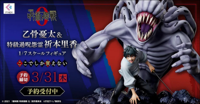 F:NEX 推出《電影版 咒術迴戰 0》乙骨憂太與特級過咒怨靈祈本里香的 1/7 比例模型塗裝完成品,這款模型將是完全下單生產商品,喜歡的粉絲一定要記得預購。