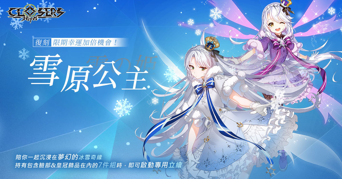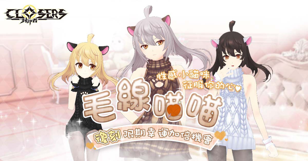 讓造型時裝陪你度過寒冷的冬季!官方特別推出包含露西及銀河在內的全角色復刻時裝「雪原公主」,以及可愛的「毛線喵喵」,並追加了全新的賽特, 未來, 銀河和露西!特工如持有七個部位飾品時還可啟動特殊專用立繪,襯托出角色的個人魅力和風格。不僅如此,「毛線喵喵」更有復刻限期幸運加倍機會,現在就一起換上華麗可愛的造型時裝,來場魅力四射的激情戰鬥吧!