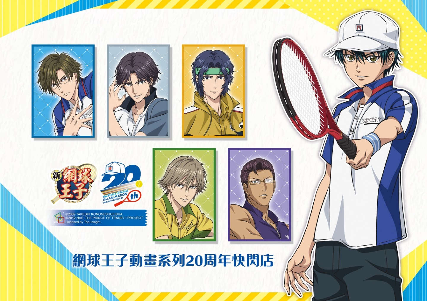 「網球王子動畫系列 20 週年紀念快閃店」全店以熟悉的《網王》元素佈置,集結五所強豪學校:青學、冰帝、立海大、四天寶寺、比嘉的主題牆面,越前龍馬、不二周助、手塚國光、跡部景吾、幸村精市、白石藏之介、木手永四郎等角色帥氣迷人的風采,就是要瞄準每位參觀者的心!現場還有網球場場景及球拍提供拍照,讓你自在拍下美技照!
