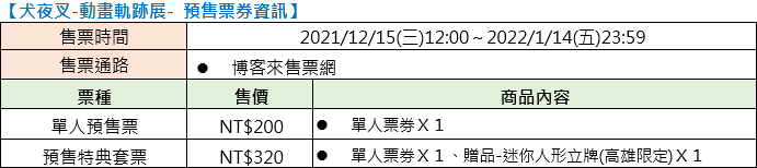 除重現日本官方展覽特點,日本入場特典也同步報到,入場即可獲得軌跡展限量圖卡,五款設計隨機發送。物販區部分更集結台、日軌跡展定番商品,讓粉絲從裡到外感受日本同步的觀展體驗!預售票 12 月 15 日準時開賣,高雄場限定套票特典「犬夜叉迷你人形立牌」全新角色登場,粉絲絕不可錯過!另提醒為配合政府防疫措施,參觀者皆需線上預約才可入場,相關資訊請密切注意特展官網及曼迪傳播 FB。