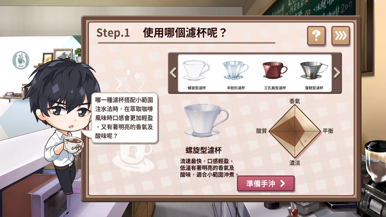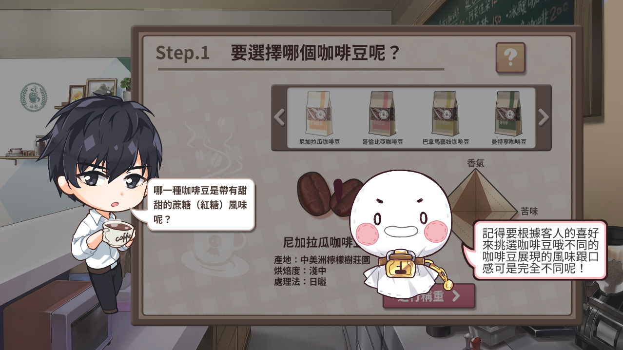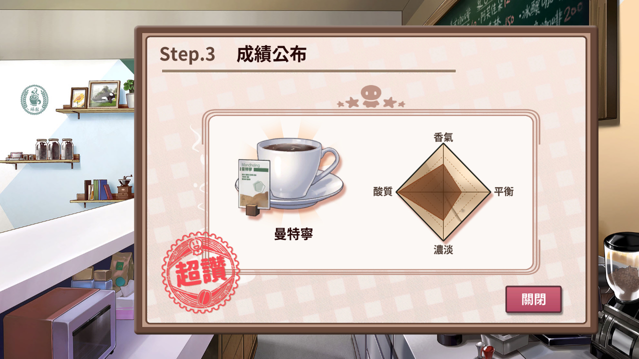 所有的線索都在畫面中,只要仔細推敲角色喜歡的風味並選出符合條件的咖啡豆