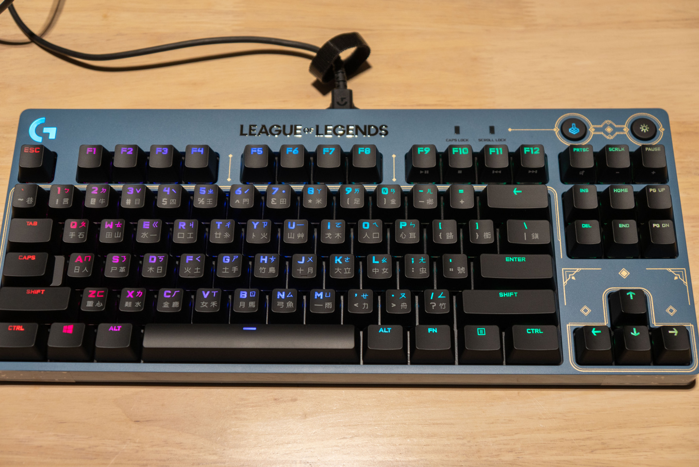搭配 GX 觸感機械式按鍵軸(茶軸),打起來手指回饋感明顯,並可自由更換其他機械式的按鍵軸,採用短鍵盤無數字鍵盤的設計,提供給滑鼠更多移動空間,搭配 LIGHTSYNC RGB 背光可以清楚顯示出遊戲的操作指令,透過羅技 GHUB 軟體能自訂背光和動畫,打造出專屬玩家的電競鍵盤。