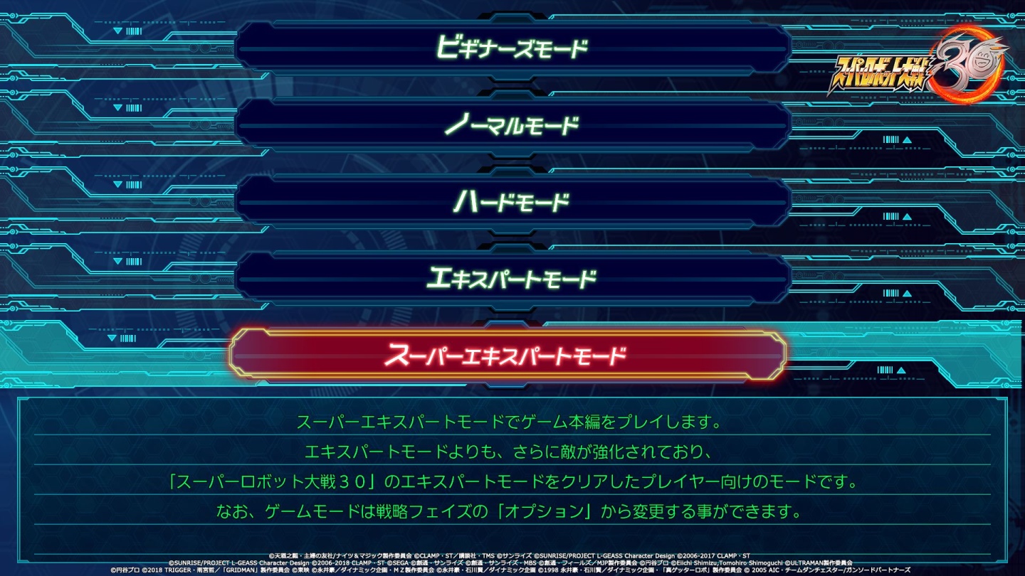 另外,還將會實裝高難度模式「Super Expert Mode」(スーパーエキスパートモード),加上各種強化上限的提升(駕駛員等級 LV99→LV200/駕駛員等能力值上限 400→999/機體.武器改造階段最大值+5/駕駛員特殊技能追加 EX 技能),讓玩家們可以在更強的狀態下,來挑戰這次實裝的超高難度模式「Super Expert Mode」挑戰!