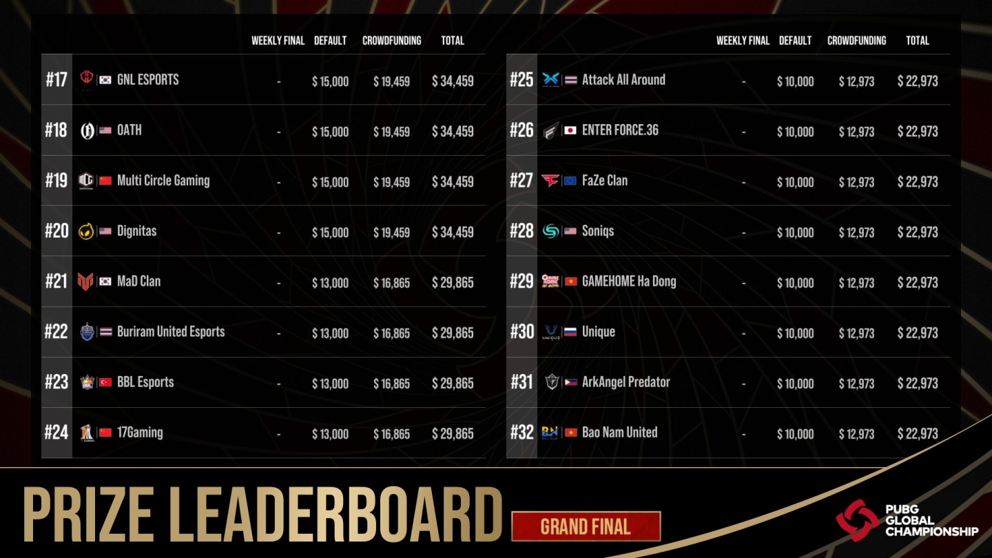 隨著最後一回合賽事結束,台港澳隊伍GEX 以總積分 90 分獲得第 7 名,與第三名的Virtus.pro僅僅15分的差距,儘管未能成功擠進前三名,總決賽第 7 名的成績已為隊史最佳,更是台港澳賽區在 PGC 賽事上的最佳成績。除此之外,GEX 在本次賽事共獲得美金$121,755元 (約新台幣 338 萬元) 獎金,同樣在 32 支參賽隊伍中排名第九名,為台港澳賽區打出了代表作。