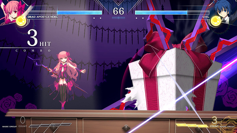 至於這次公開的「死徒諾耶爾」,為之前新版《月姬》新版《Apiece of blue glass moon》中登場的角色,如今也將會在本作中首度參戰。能使用豐富飛行道具與強力設置攻擊來限制敵人行動,並有如蝴蝶一般在場上飛舞的她,將活用自己豐富多變的戰鬥技巧成為支配戰場的王者!