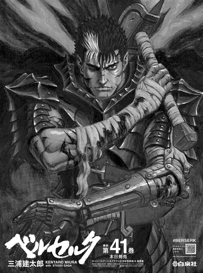 三浦建太郎《烙印勇士》單行本第 41 集於今天(12/24)在日本發售,本消息於紐約時報、法國世界報、朝日新聞三報紙皆刊載廣告。