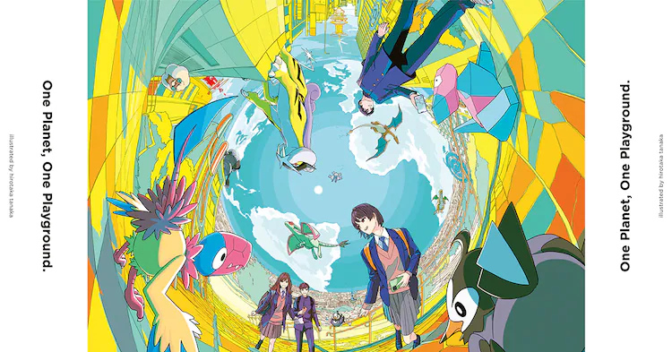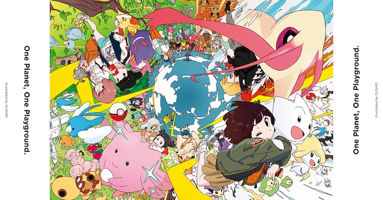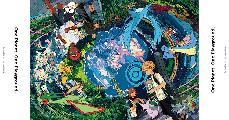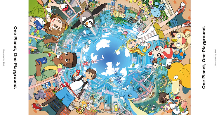 廣告以「360° Playground」為概念,彷彿是全景相機拍出的畫面,將角色和寶可夢們安排得緊密卻又不失互動感,也表現出了地球的任何一個地方都是冒險的舞台,都能給予玩家們興奮又期待的感覺。參加本企劃的其他插畫家還包括アカサカハル、SUSHIO、TAO、田中寛崇。