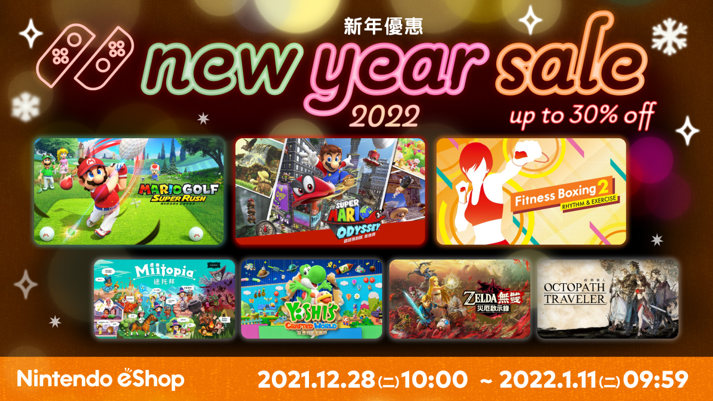 迎接 2021年末~ 2022 元旦,任天堂於香港、台灣、日本 Nintendo eShop 推出特價活動「新年優惠2022」,提供《ZELDA無雙 災厄啟示錄》等多款遊戲以折價優惠七折販售中。