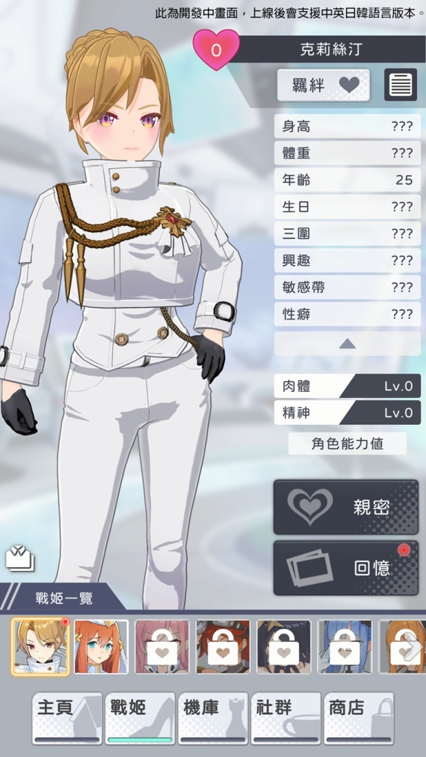 進入調教房間,會發現戰姬們都已經在八爪椅上等著被玩弄,這時候有「精神調教」及「肉體調教」讓您選擇,兩種方式都會提升戰姬的能力數值,不同的是「精神調教」會增加戰姬的忠誠度,而「肉體調教」則是增加戰姬的淫亂度,忠誠度與淫亂度越高,就能解鎖更多戰姬淫蕩的HCG囉!