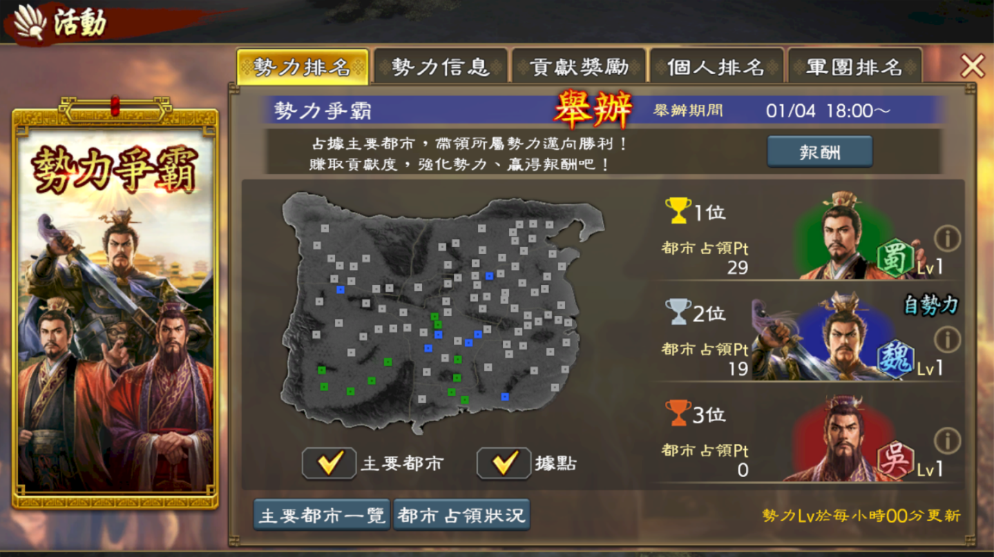 臺灣光榮特庫摩宣布,唯一由三國志系列之本家日本光榮特庫摩重磅推出 MMO 戰略模擬手機遊戲《三國志 霸道》將於 1/4(二)更新重大遊戲內容『勢力爭霸』,本篇將介紹『勢力爭霸』相關規則。同時也將於 1/4 舉辦『勢力爭霸』獎金二百五十萬挑戰賽,總獎金高達 250 萬新台幣,邀請各路好手共同搶奪最高榮譽、奪取高額獎金。