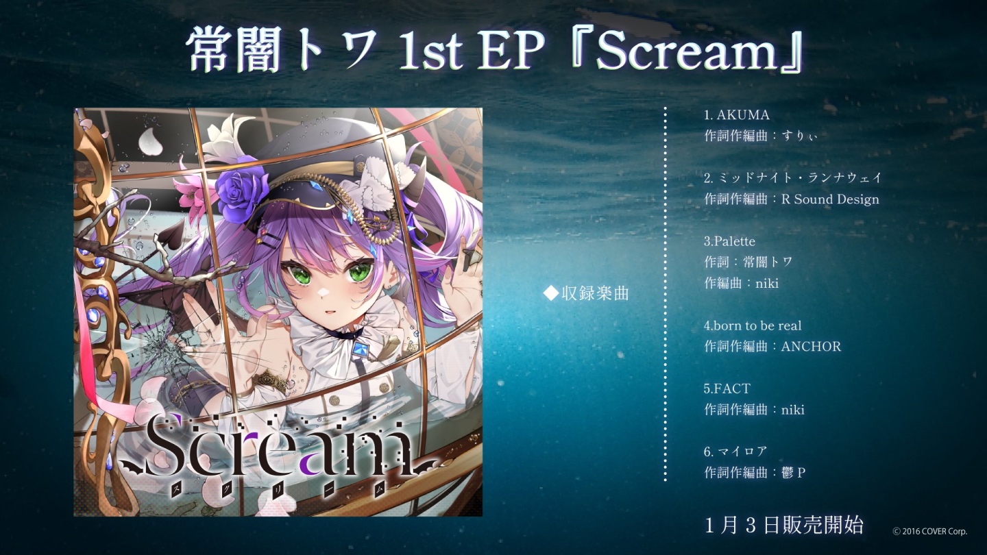 隸屬於 HOLOLIVE Production 旗下的 Vtuber「常闇永遠」(常闇トワ)在迎接自己出道兩周年紀念時也宣布推出個人第一張 EP「Stream」,從 1 月 3 日起正式在 HOLOLIVE 官方商店上架。