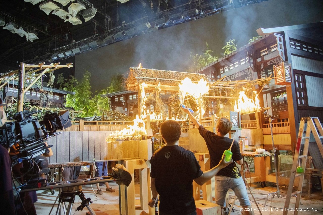 為了增添真實感拍攝時還將辛苦搭建的場景直接燒毀