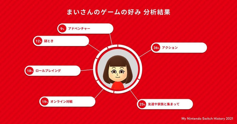 而上述這些結果,都可以透過畫面中的「共有」選項來分享到玩家的 SNS 社群平台上,與朋友一起分享。目前「My Nintendo Switch History 2021」預定自即日起開放到 3 月 14 日為止,有興趣的玩家們可以趁現在趕快來幫自己做個分析紀錄。