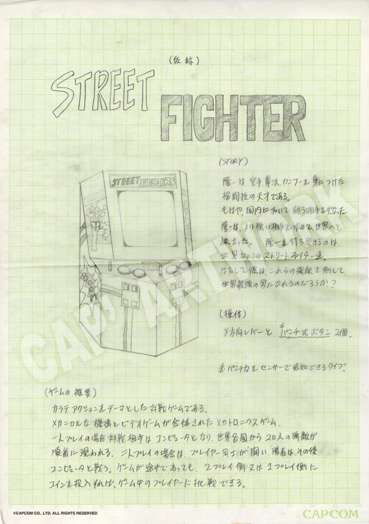 日本 CAPCOM 為慶祝旗下人氣對戰格鬥遊戲《快打旋風》系列 35 週年,將在日本澀谷、北九州市與福岡市等地舉辦「俺より強いやつらの世界展」,而 CAPCOM 的設計部門在自己推特上公布了最初街機版的企劃書,網友便注意到原來當初主角的名稱並不是叫作「隆」(リュウ)?