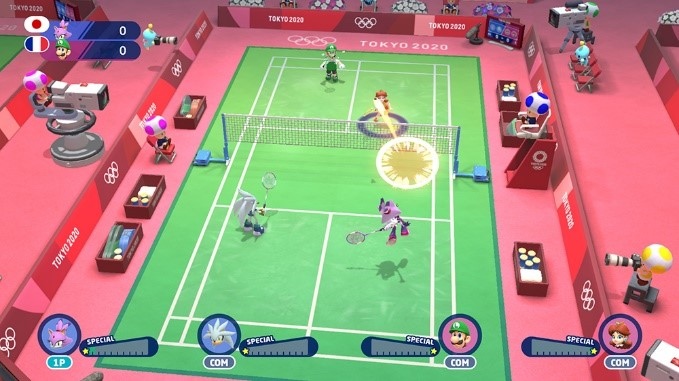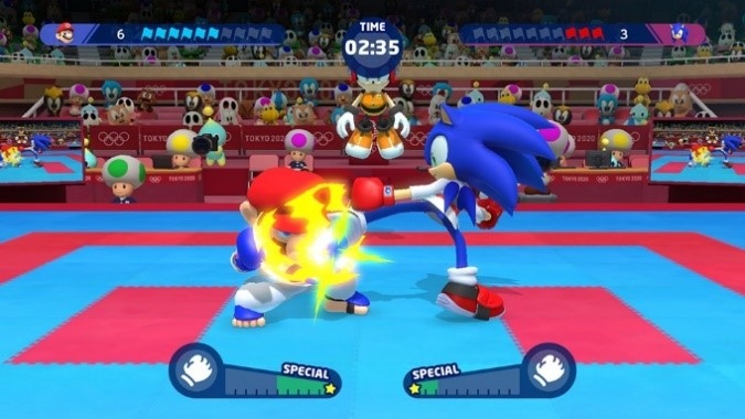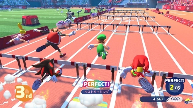 《瑪利歐&索尼克 AT 2020東京奧運》由任天堂的瑪利歐與SEGA的索尼克,各自帶領著代表兩家公司的角色們於遊戲中同台演出,是奧運遊戲的最新作品。不論任何人都能輕鬆地以按鍵操作方式來享受本遊戲的樂趣。除此之外,也能透過 Nintendo Switch 的 Joy-Con 功能,以體感操作方式來遊玩。