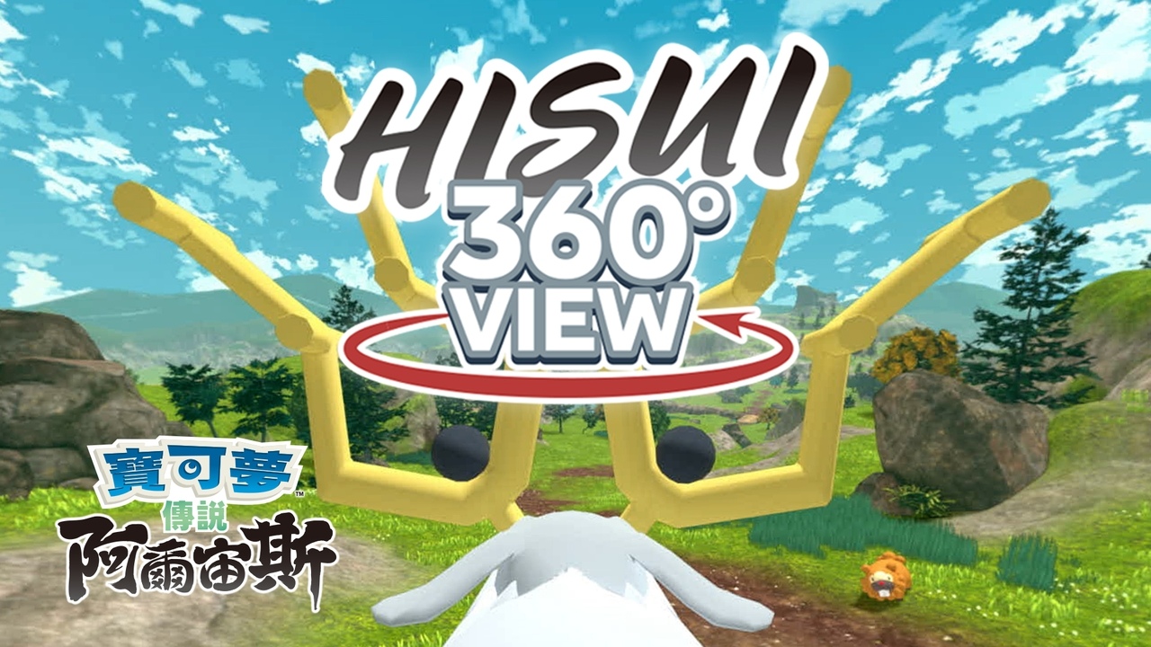 作為冒險舞台的洗翠地區,特色為土地遼闊且自然資源豐富。本次公開的 360° 動畫「HISUI 360°VIEW」中,再現了彷彿置身於洗翠地區的臨場感。 在影片中,可以點選螢幕畫面自由改變角度和方向,體驗與寶可夢相遇的樂趣。除此之外,也可以利用三隻不同的寶可夢移動,體驗遊戲中的「寶可騎行」。包含了在陸地上奔跑的「詭角鹿」,在天空中翱翔的「勇士雄鷹」(洗翠的樣子),以及在水中氣勢磅礡直前的「幽尾玄魚」,體驗到與寶可夢共同在洗翠地區奔跑冒險的樂趣。透過「HISUI 360°VIEW」來實際體驗《寶可夢傳說 阿爾宙斯》的魅力吧!