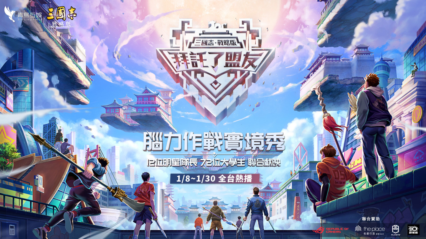 《三國志.戰略版》慶賀上市滿一週年慶,營運團隊精心籌備多時的超強企劃,首創大型實境節目話題的節目「拜託了,盟友!」腦力實境秀終於正式開播!官方表示:「我們集結了來自全台40所大學的校園實力玩家,並且由 12 位 TOP 人氣明星網紅們領軍對戰,不只是希望回饋給玩家一場精采的大型實境賽事,更希望做出一場引領大眾眼球的腦力作戰實境表演秀!」。而精彩可期的首集播出後,玩家不只是看到眾星雲集的團隊陣容,比賽中每個隊伍賽前討論到彼此放話與相見後的合作情誼到背刺等微妙關係變化,也成功的引爆全台校園間的對立、結盟與恩怨情仇!。