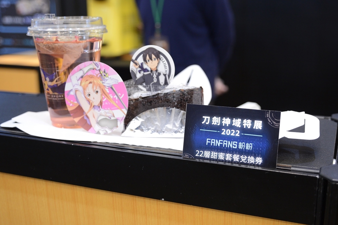 這次「刀劍神域特展 2022」還特地與「粉粉 FANFANS 主題餐廳」合作推出輕食吧,逛累了可以在這邊喝飲料吃蛋糕,不僅入手心愛的角色杯墊,也補足了體力!之後就是長約 50 公尺的精品銷售區,也許有些粉絲接下來無法參加 2022 台北國際動漫節,但在這裡你可以一次購足木棉花最新推出的相關商品,從旅行必備的登機箱、行李袋,到可以放在身上天天使用的卡夾、手機掛脖帶,可說是應有盡有,新年需要新氣象改變一下身上的配件,在這裡找準沒錯!
