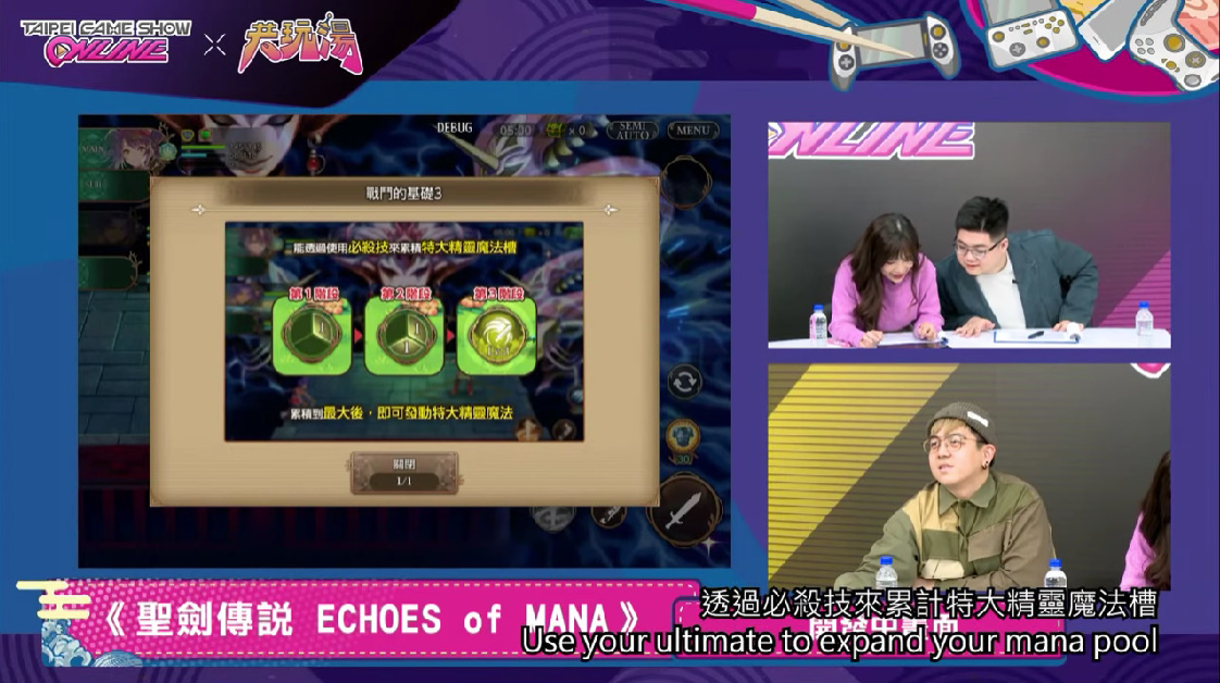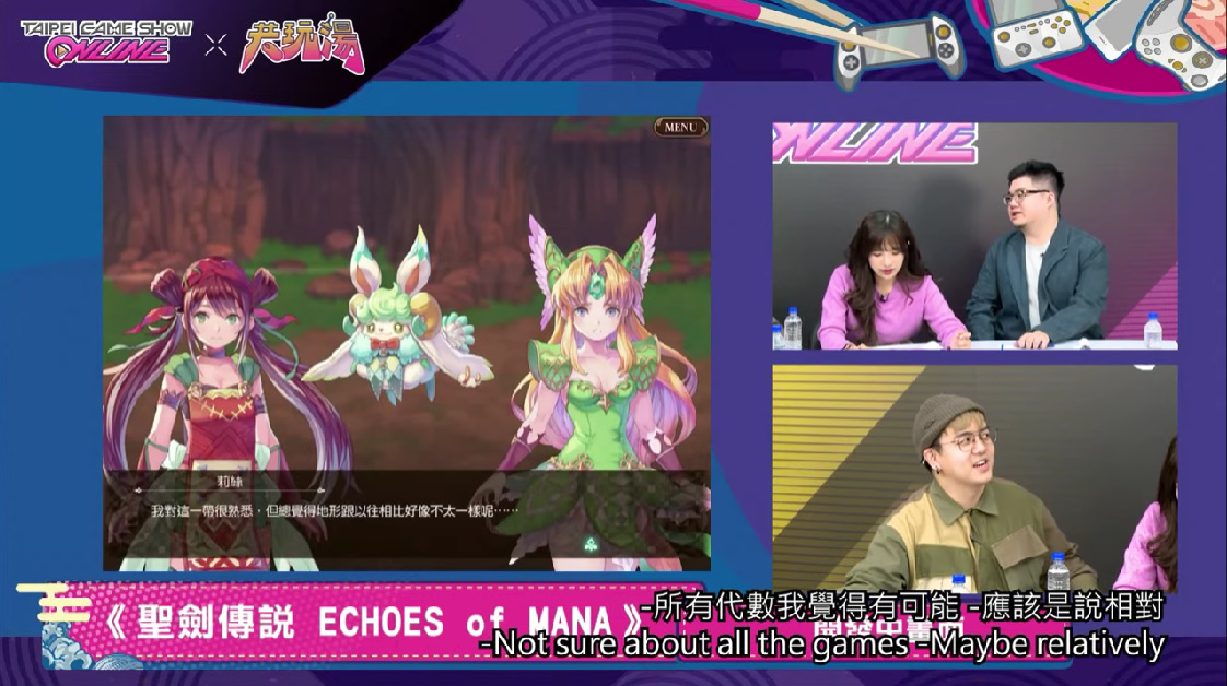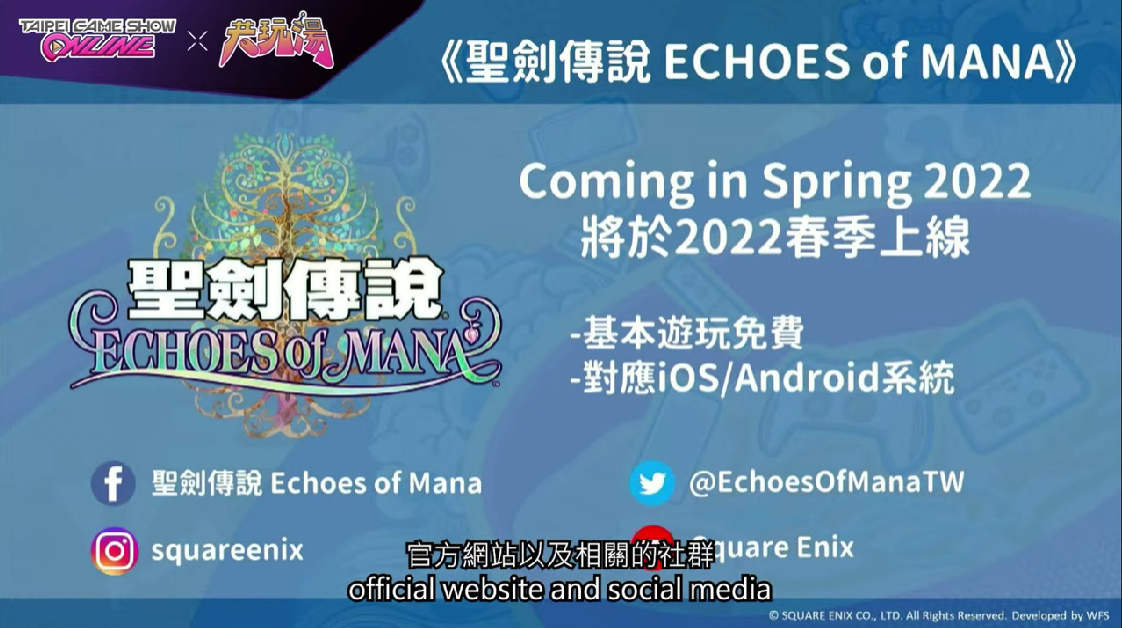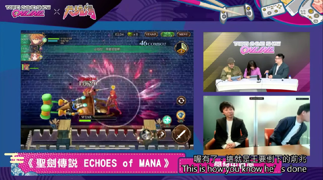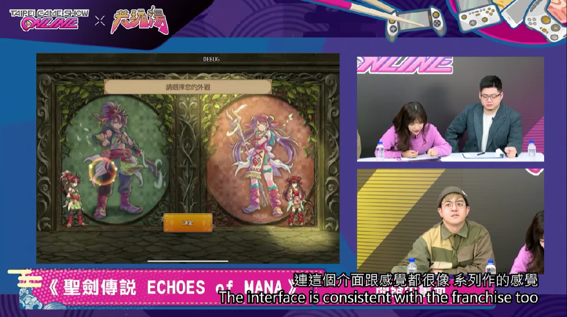 SQUARE ENIX 所開發的《聖劍傳說》系列動作 RPG 手遊《聖劍傳說 ECHOES of MANA》,今(22)在台北電玩展特別節目「2022 Taipei Game Show ONLINE」中,由主持人湯米與貝莉莓,和來賓 6tan 以及遊戲開發總監村田先生和製作人治田先生帶領玩家一起進入懷念的《聖劍傳說》世界!