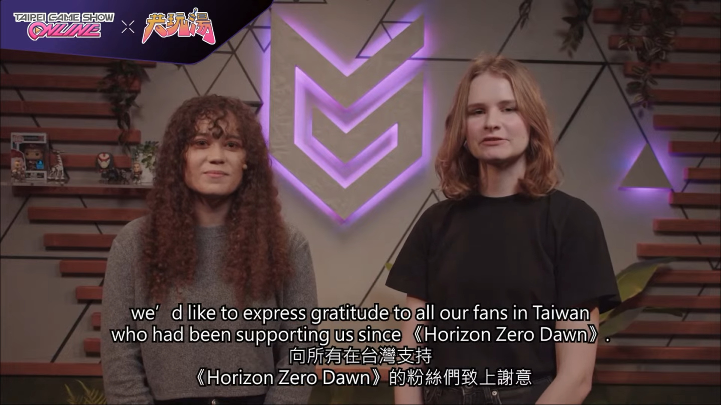《地平線:西域禁地》開發商 Guerrilla Games 的社群經理 Chante 與 Anna 代表開發團隊向台灣玩家致意,提到 2017 年《地平線:期待黎明》在台北電玩展受到粉絲的歡迎與試玩,以及正式上市後來自台灣玩家的好評。