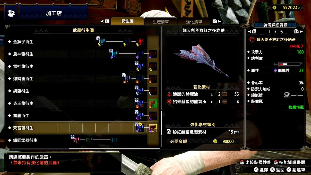 天彗龍劍斧 最高的 37 龍屬性傷害,還是強屬性瓶 原生90白斬,自帶二階洞百龍技招招實用 |
