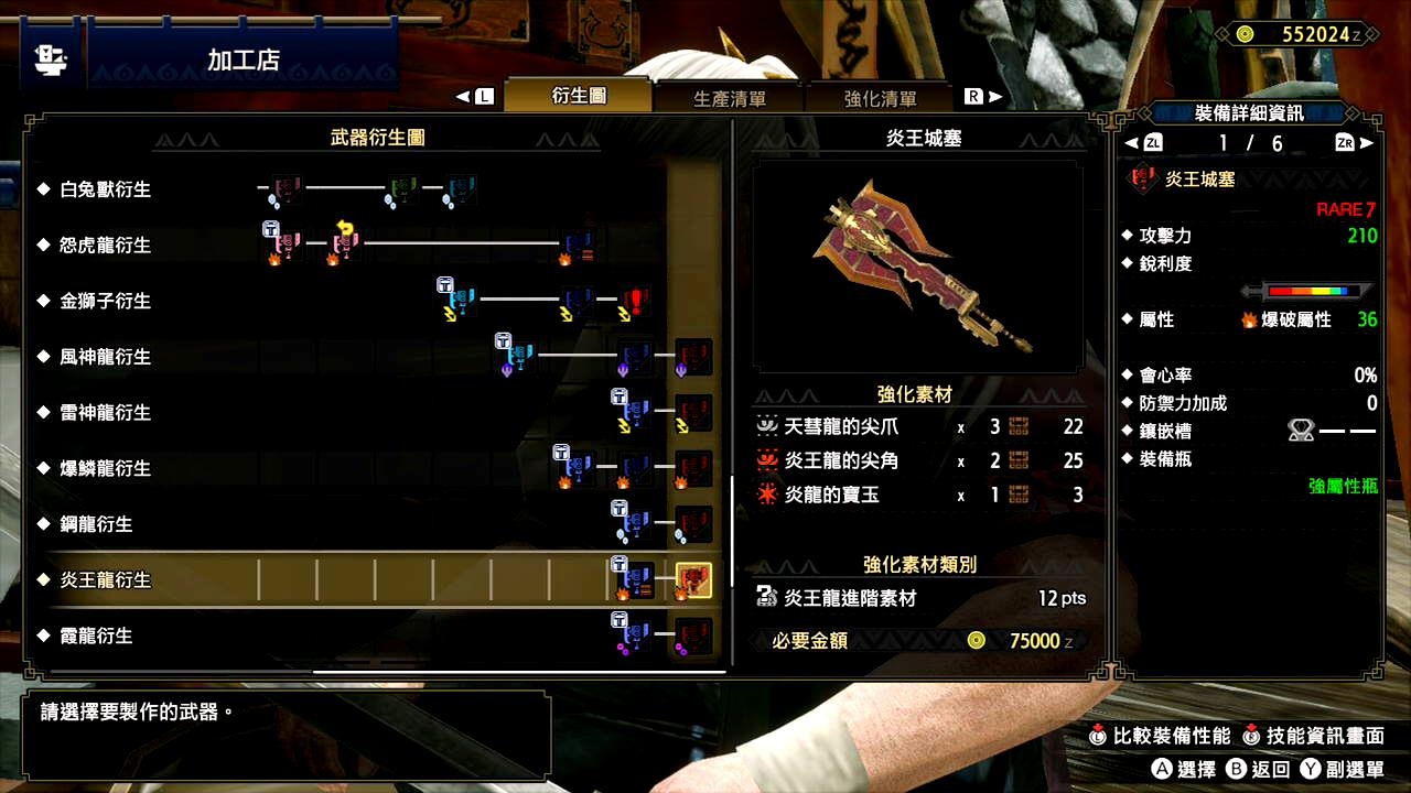 炎王龍劍斧、原生30藍斬,匠 4 出白斬 最高的 36 爆破屬性、強屬性瓶,一個槓上再開花 炎王劍斧是爆破特化的劍斧,是真正的炸他全家,而爆破屬性不挑肉質的特性,讓炎王劍斧即便在團戰中也有相當穩定的表現和輸出,砍得到弱點最好、但即便沒弱點可以砍,炎王劍斧也可以直接爆破 |