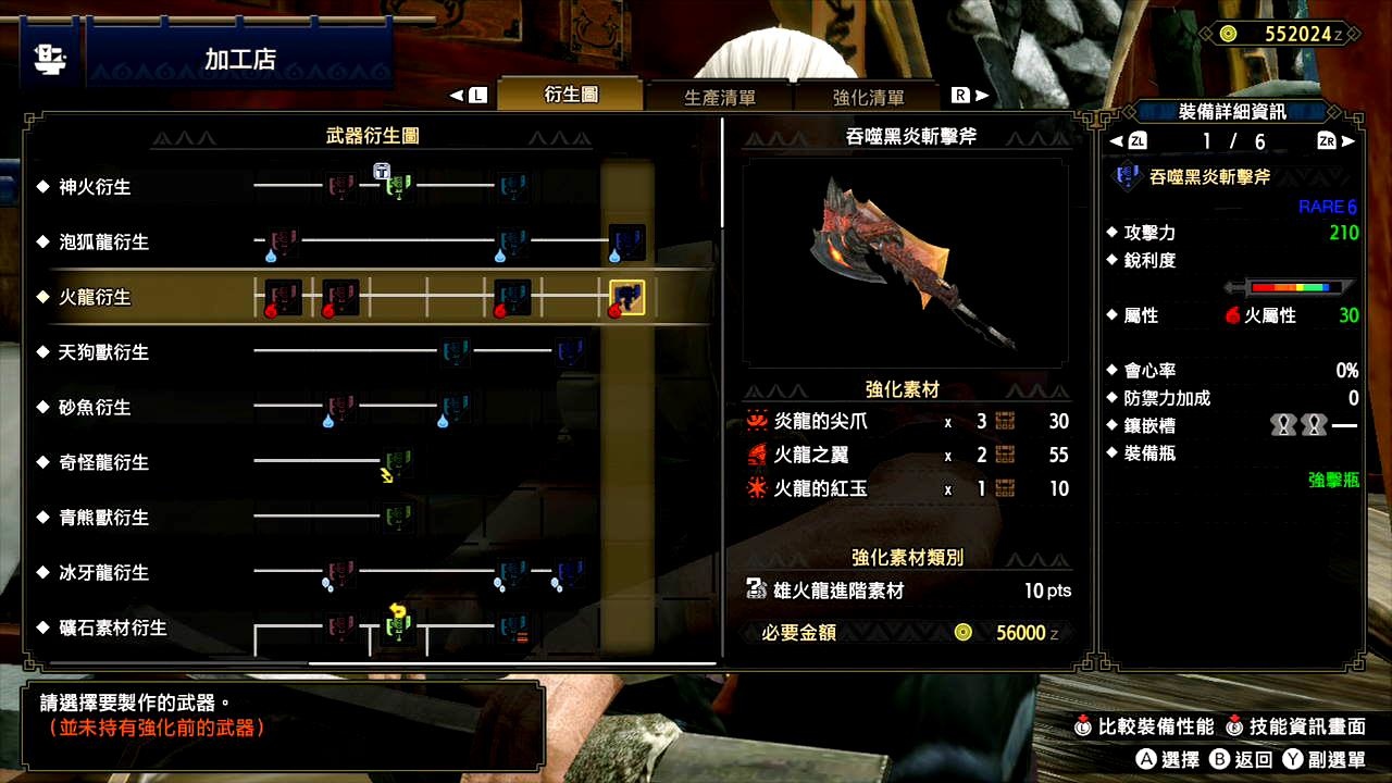 火龍劍斧可以從神火鐵劍斧升級上去,所以如果是完全新手,選擇由劍斧拓荒,初期投資一點基礎礦石在神火鐵劍斧上不吃虧,雖然不適合做為打完風雷合體前的拓荒劍斧,整體來說火龍劍斧下限和上限都相當高,只要給他基本的銳利度支援和高速變形,就相當能打,如果護石很神,還可以湊出白斬和耳塞全餐,那面對弱火怪更是威猛到不行,是火屬性劍斧中的扛霸子,相當值得一作!