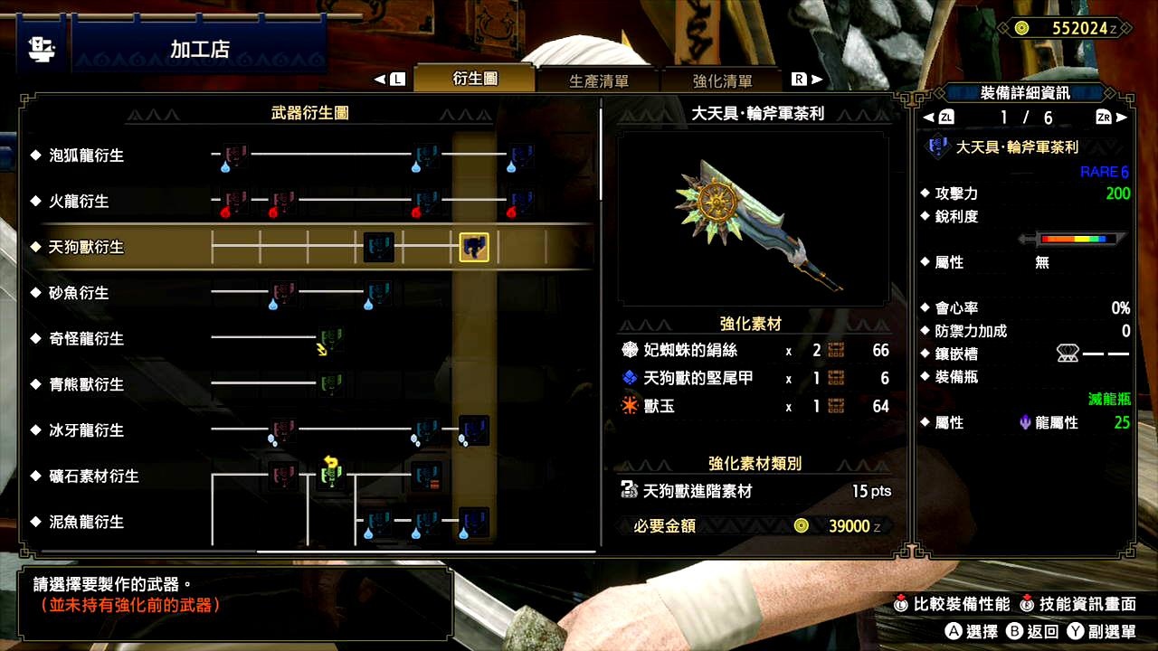 天狗獸劍斧、自帶三階洞、原生40藍斬,匠1出白斬、滅龍瓶是全劍斧覺醒最快的瓶種 自帶強力百龍改造、可配全套天彗龍裝 天狗獸劍斧是低調 OP 的神兵,上面提到的各項優勢都是一環扣一環、相輔相成的,有著 RISE 數一數二強的百龍技能,鐵蟲絲技強化,更是讓這把屠龍如虎添翼 |