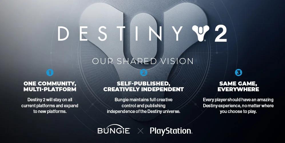 Bungie 同步發表聲明,表示與 SIE 合作依然保持原有的創意獨立性,將共同創造與培養標誌性的 IP ,連結全球不同平台與娛樂媒體的粉絲,並繼續推重 Bungie 社群,並且讓玩家自由選擇在何種平台上遊玩,SIE 帶來的資源是加速 Bungie 的人才招募來支撐其願景,包括目前開發營運中的《天命2》。