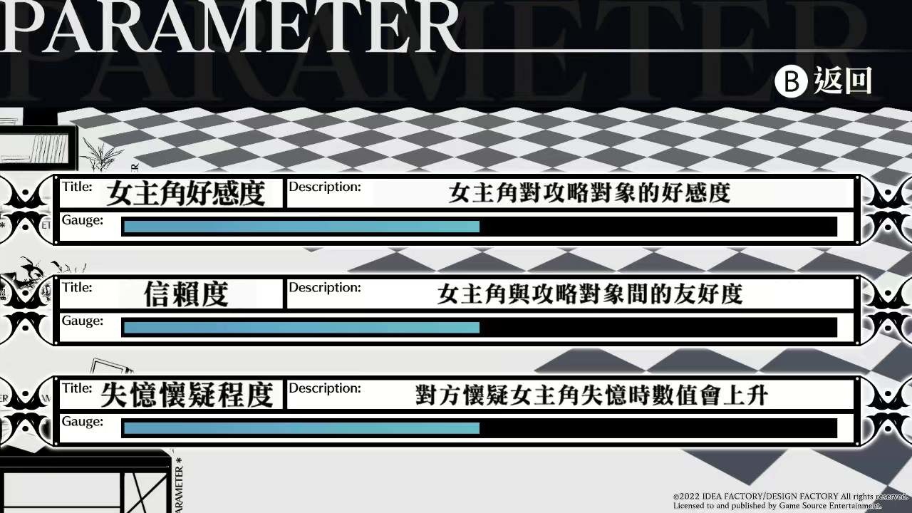 一旦攻略對象懷疑女主角「是不是失憶了?」此數值即會上升。