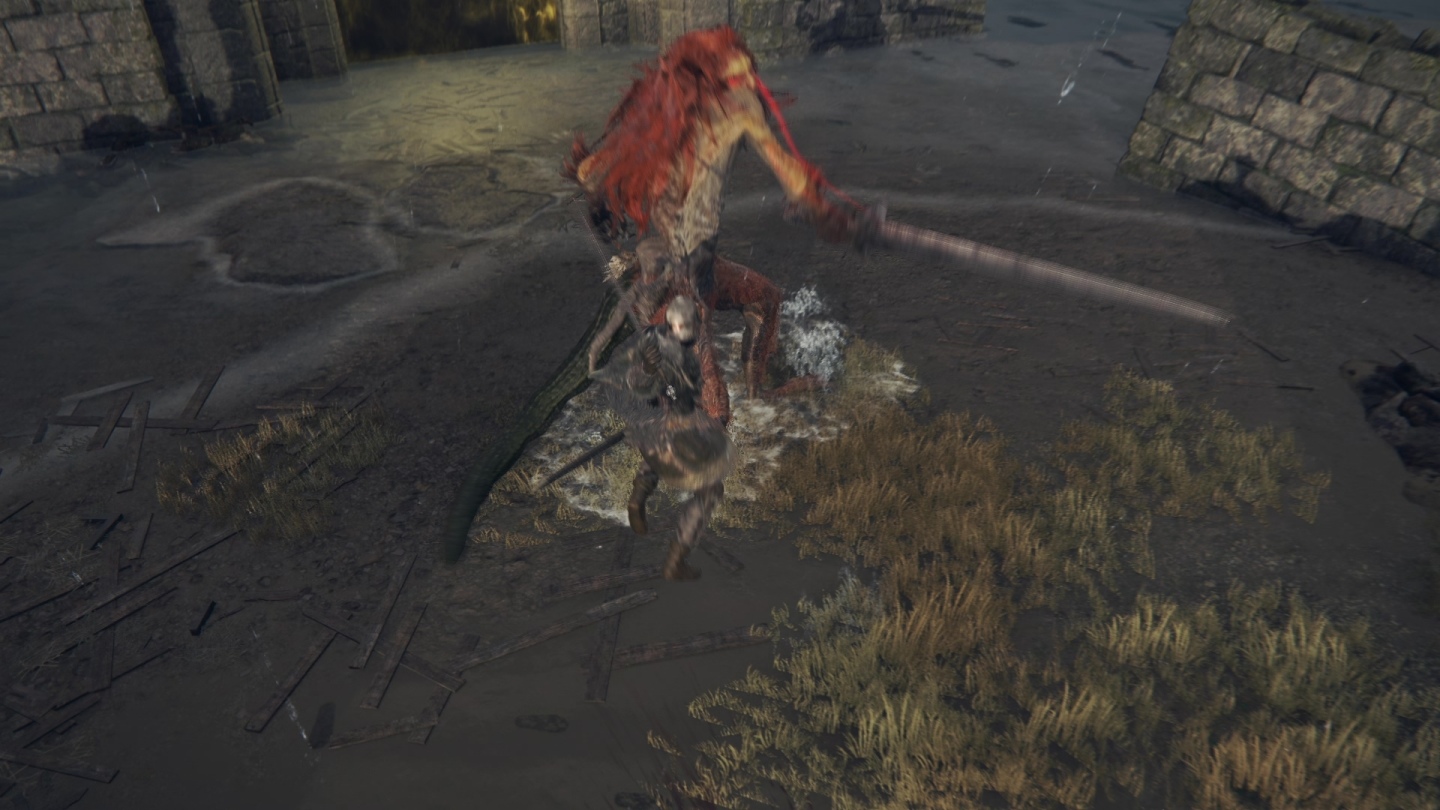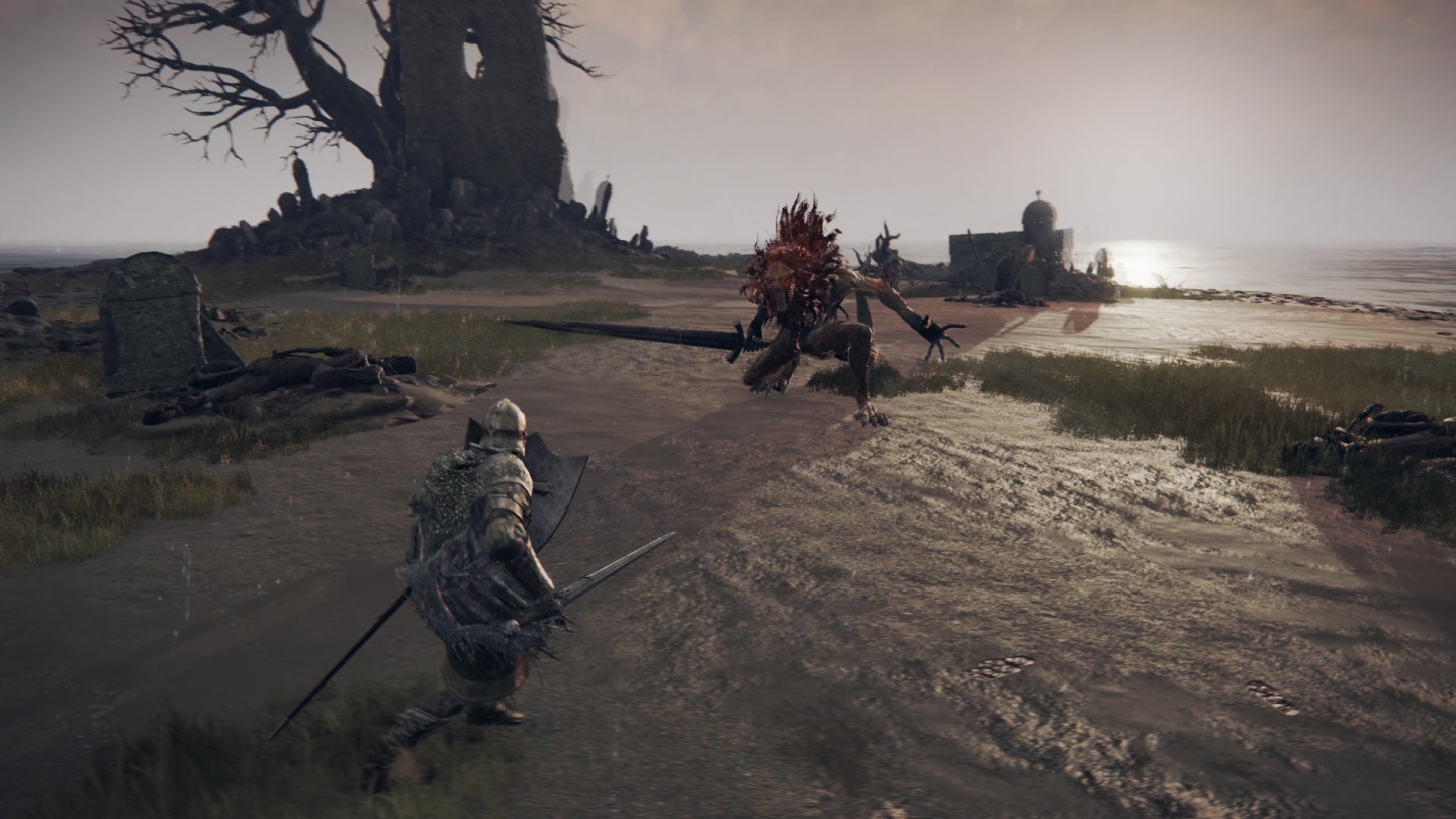 其餘的戰鬥體驗,在網路測版太過強勢的技能已經無法取得,除了體驗版區域以外,朝向東方道路會到充滿詛咒的「蓋利德」,這裡有著宮崎英高最愛的沼澤區域、還有魔法鎮等區域。因有靈馬的緣故,初期可以探索到很遠的區域,遇到強敵可以避戰。但會察覺到離起始之地越遠的區域,怪物的防禦與血量明顯增強,因此玩家在高等區僅能取得物品裝備,拓荒需要相當熟悉。