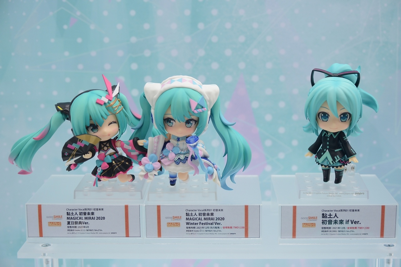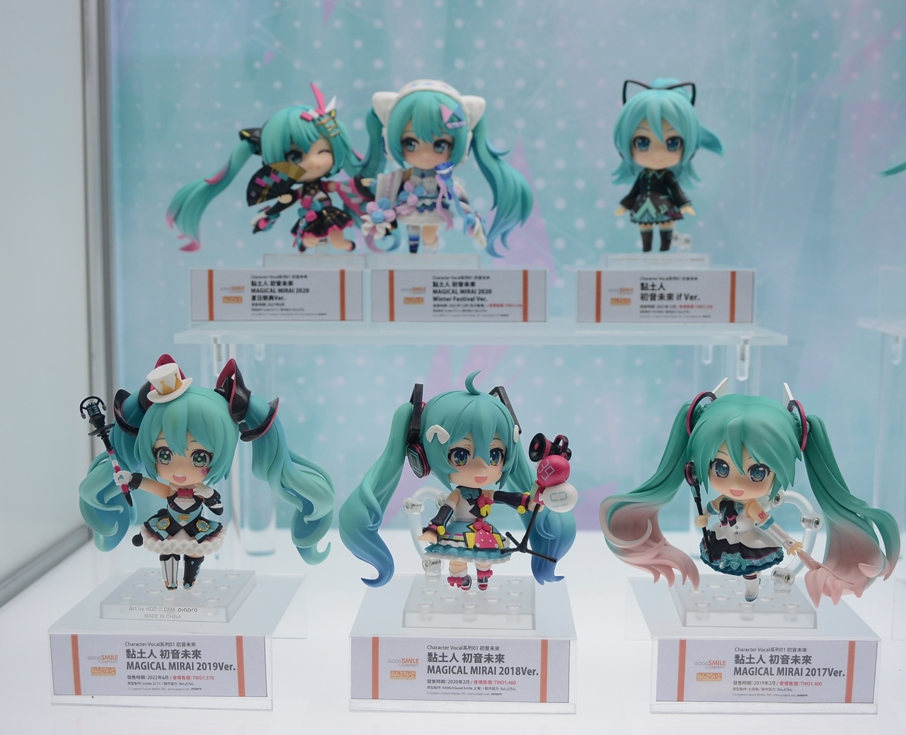Good Smile Company 參展 2022 台北國際動漫節,帶來現貨現場銷售。這次聚集目光的除了有 2022 年的 1800 號「雪未來 Grand Voyage Ver.」,「MAGICAL MIRAI」系列的初音未來黏土人也一次亮相展示,更有歷代特別造型的初音未來黏土人等你帶回家。除此之外,價格實惠、製作精良的小型模型系列「POP UP PARADE」絕對是最棒的收藏目標,既能表現出角色的獨特魅力,還不用擔心收納空間不足,是喜歡一次購入 CP 的粉絲們絕佳的收藏品。而娃爸娃媽們也不要錯過「黏土娃」的追加表情套組及毛茸茸的布偶睡衣,新年快幫家中小娃買套新衣、添購裝備吧!